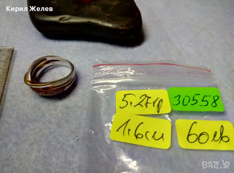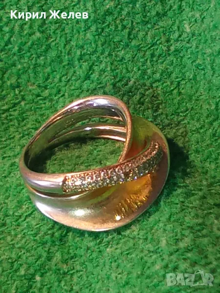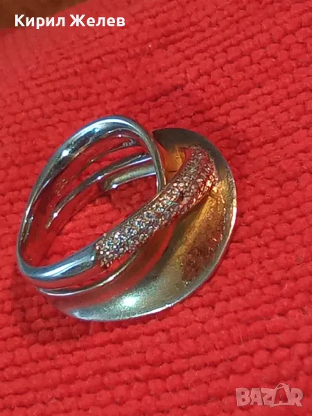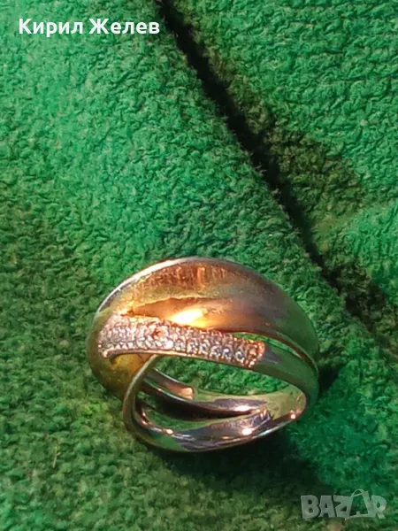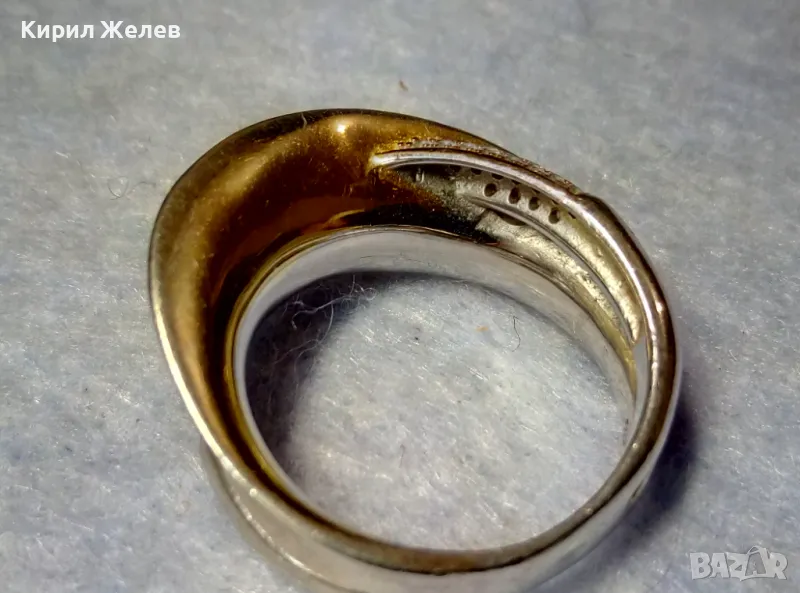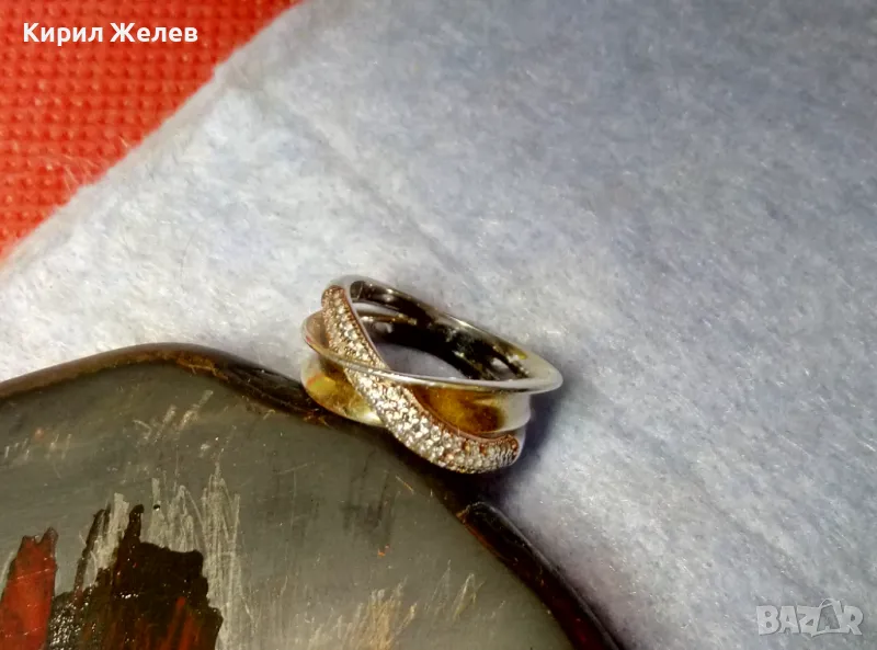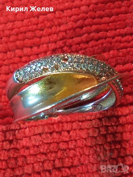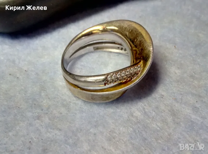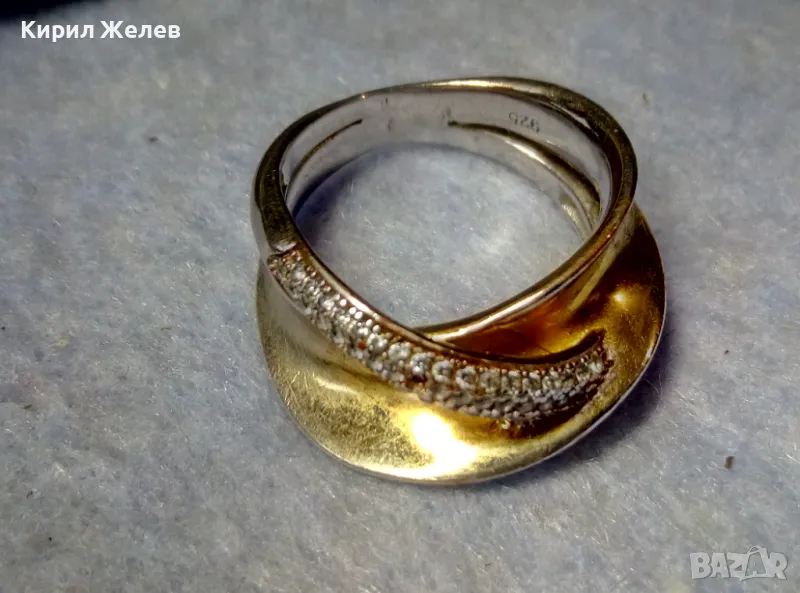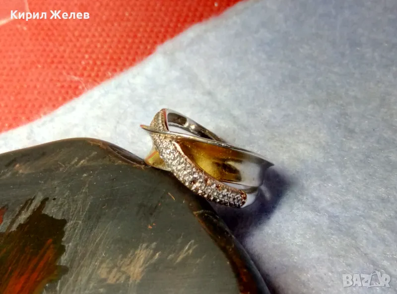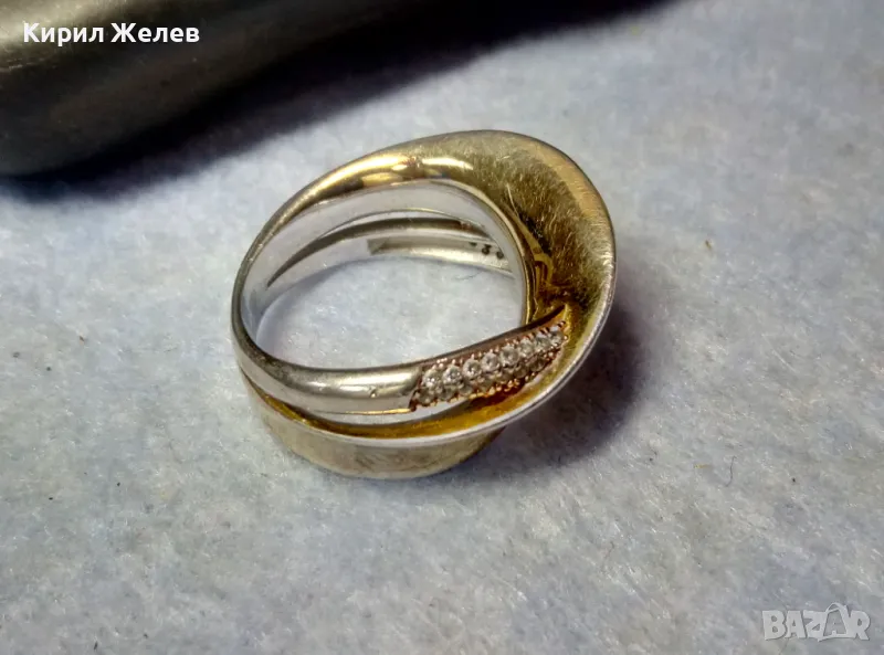 ЕЛЕГАНТЕН АРТ ПОЗЛАТЕН СКЪПОЦЕНЕН СРЕБЪРЕН ПРЪСТЕН СРЕБРО 925 с БЯЛА и ЖЪЛТА ПОЗЛАТА и ЦИРКОНИ 30558