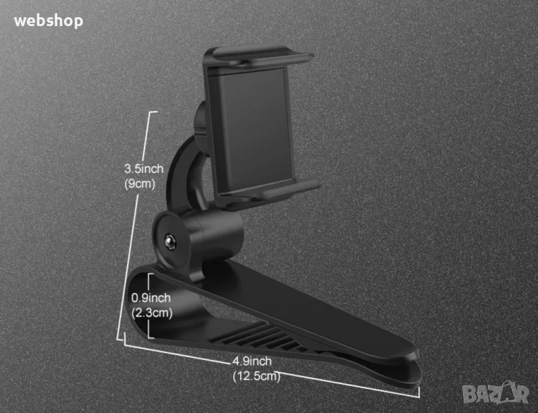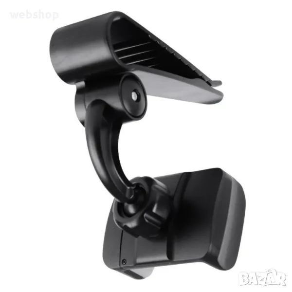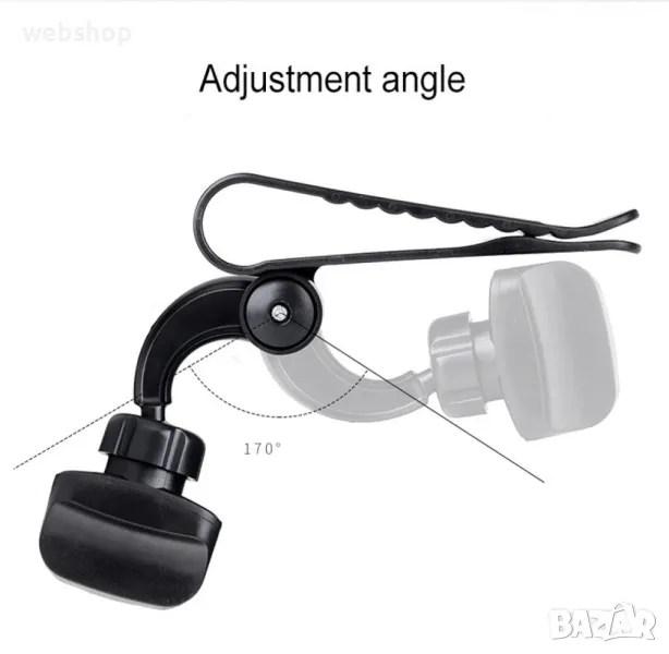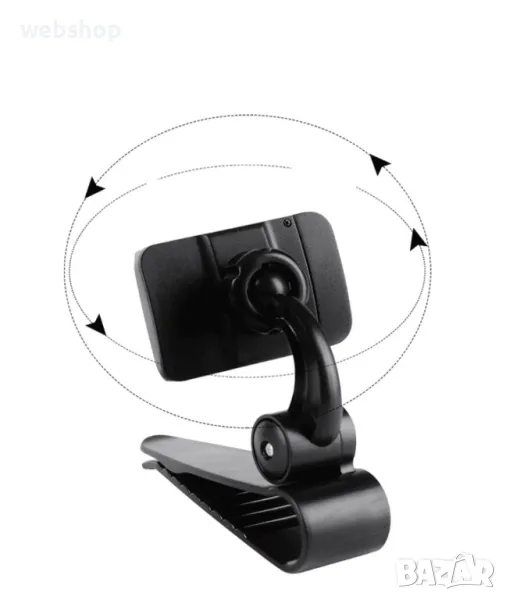 Този нов модел стойка за автомобил ви позволява да поставите своето мобилно устройство на сенника, при което имате удобството да получите видимост от 170о по хоризонтала и да шофирате без опасност от пътни инциденти, докато използвате навигация или друг вид комуникация. Осигуряването на подходяща стойка за мобилните и навигационни устройства в автомобила, е от голямо значение за вашия комфорт и пътуване. Стойката използва за закрепване щипка, която може да поставите на сенника за минути, не оставя следи или повреди по сенника, но стабилно държи устройствата на място и не позволява те да изпаднат по време на движение или трусове, при което могат да се повредят. Държача за мобилните устройства, който се прикрепя към стойката може да се завърта на 360о и поддържа устройства с размери от 50мм-95мм, стабилно и сигурно. Не е необходимо да разполагате с различни видове, стойки, тази е подходяща за всички ваши устройства. Стойката има стилен и заоблен дизайн, който същевременно е практичен и удобен. Стойката може да се използва за всеки вид автомобил, тя е в класически черен цвят, който е подходящ за всеки вид интериор. Стойката е практична, лесна за поставяне и отстраняване, същевременно ви осигурява най – подходящият ъгъл на видимост, който да настроите, за своите предпочитания и нужди.