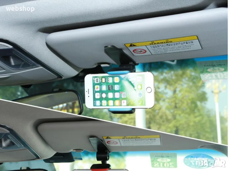 Универсална стойка за телефон с щипка, Подходяща за сенник на кола