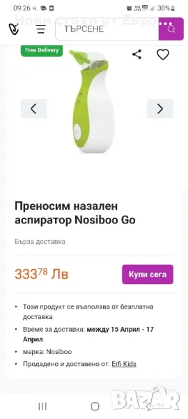 Преносим назален аспиратор Nosiboo GoПреносимият назален аспиратор Nosiboo Go е медицинско устройство, което отговаря на изискванията на FDA и е подходящо за домашна употреба. Благодарение на патентованата пластмасова глава без BPA и силиконовия връх, устройството не дразни носната лигавица.Nosiboo Go работи с най-новата технология (UPT), с постоянна, висока всмукателна мощност. Освен това, работи с добре познатата всмукателна система на Nosiboo, която напълно абсорбира носните секрети и предотвратява навлизането им в устройството.Всмукателната мощност на Nosiboo Go е определена от специалисти по УНГ, за да се предотврати нараняване при прекомерна или неправилна употреба.