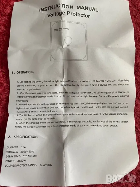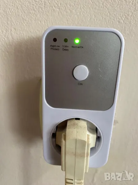 При промяна в напрежението автоматично изключва уреда - прекъсва към него електричеството за 5 мин. Пуска го когато напрежението в мрежата си влезе в безопасните рамки.