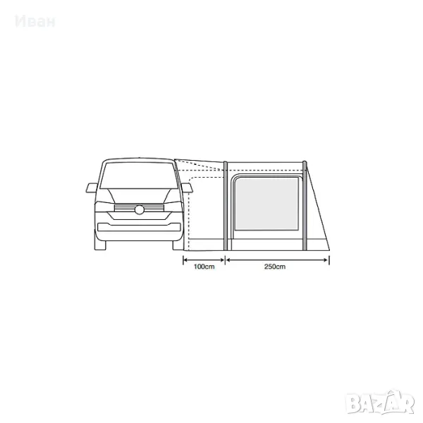 * Тази тента може да се използва и като свободно стоящ подслон или беседка в горещо време Обширни тонирани прозорци против отблясъци