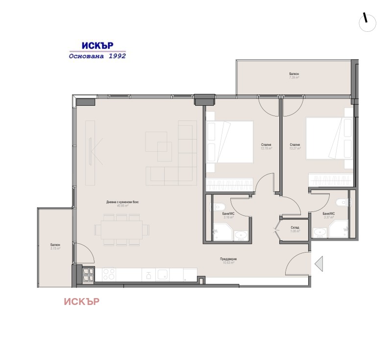 Тристаен апартамент с 2 спални, дневна с трапезария и кухненски бокс, 2 бани с WC, входно преддверие, тераса и складово помещение. Изложенията са северозапад и североизток. Сградата е с акт 14,до месец акт.15 със срок на завършване лятото на 2026г.Възможност за закупуване на подземен гараж. Начин на плащане 20% при подписване на предварителен договор и 80% след акт.16. Затворен комплекс в квартал Оборище. Разполага със собствен вътрешен парк, озеленени интериорни пространства и общи тераси за отдих и забавление. На партерно ниво са предвидени супермаркет, кафене, магазини и фитнес на две нива. Комплексът се намира на минути от пл.Св.Александър Невски , Народното събрание, много културни забележителности и галерии. В квартала ви очакват и едни от най-реномираните ресторанти и кафенета.В сградата се продават последни няколко апартамента със същото разпределение на 5,6 и 7 етаж по два на етаж с квадратури от 113 до 126 кв.м. и цени от 447750евро до 485900 евро.За контакт тел.0884 932363 Евгения Станева