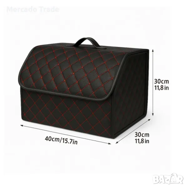 Стилен кожен органайзер за багажник с червен шев 40x30x30см.