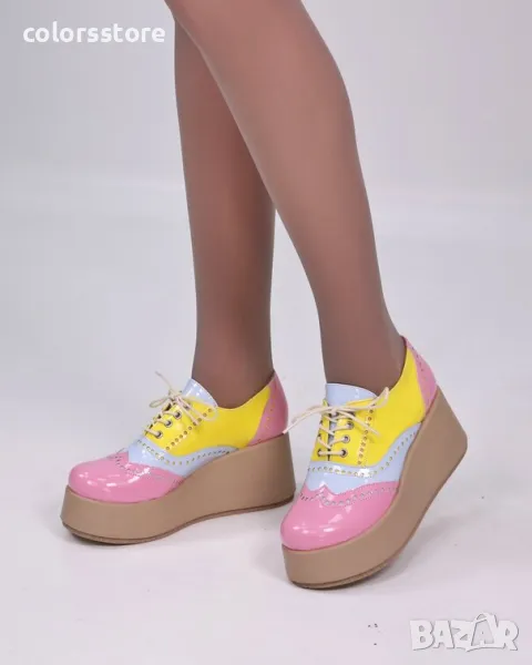 Обувки на платформа - розово, синьо и жълто лак - 450-L → Обява 49889952