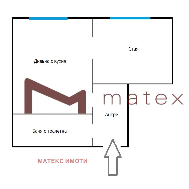 - Партерен апартамент с площ 50кв.м., представляващ: дневна, спалня, антре и санитарен възел.