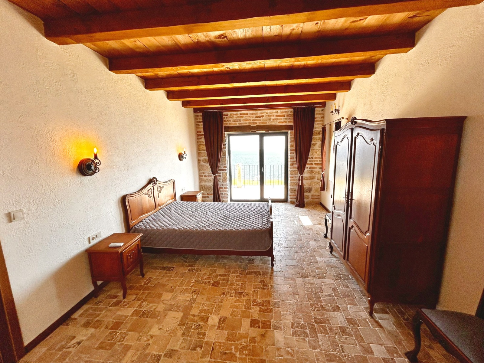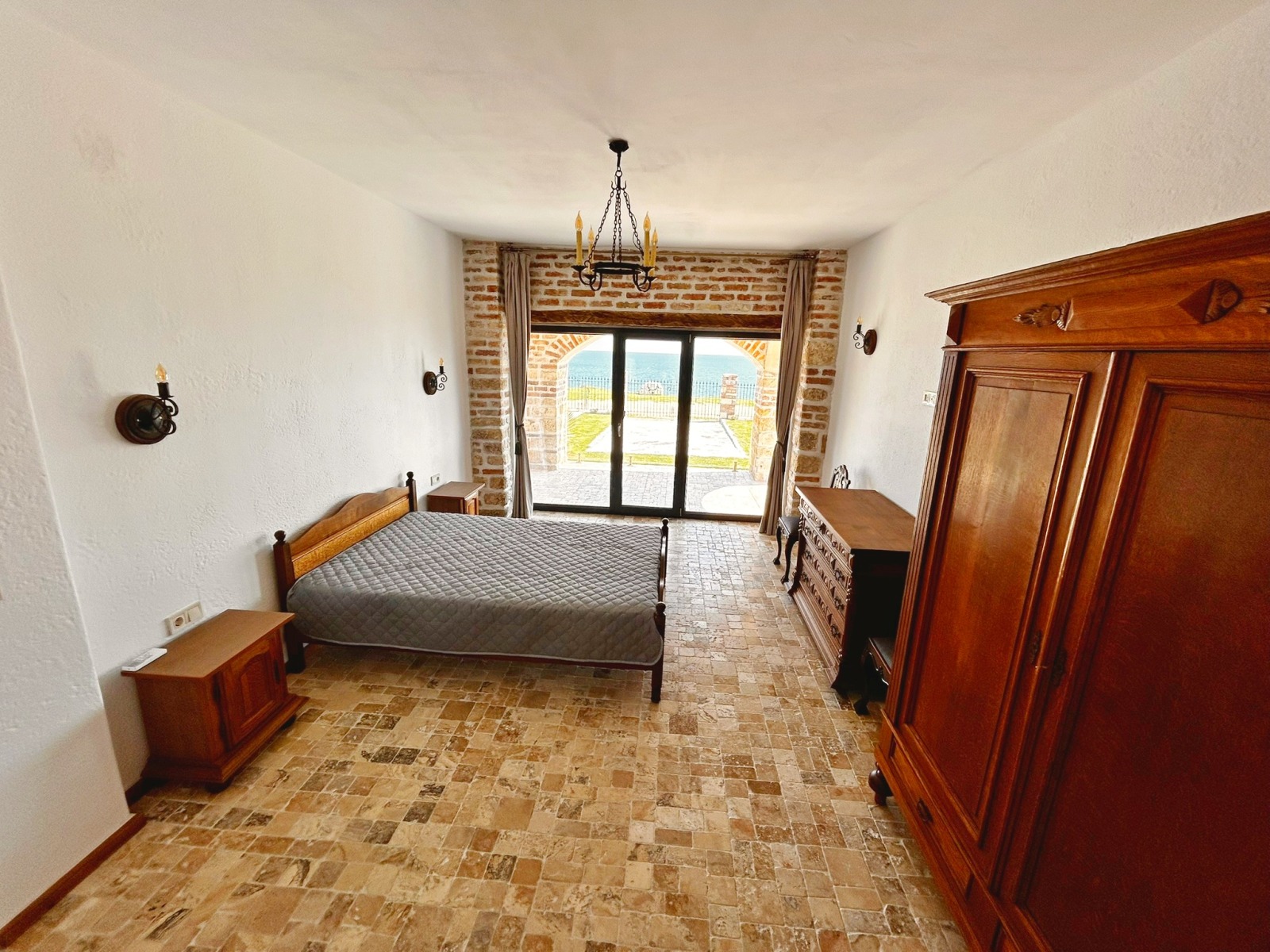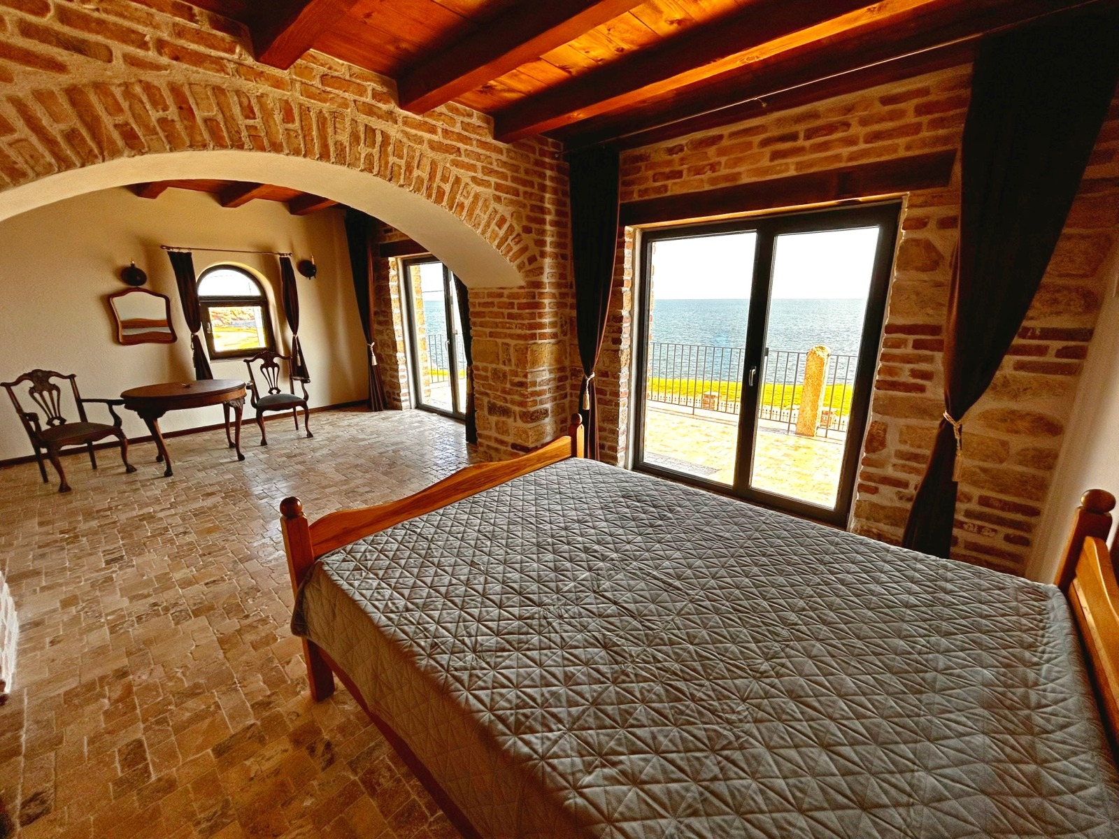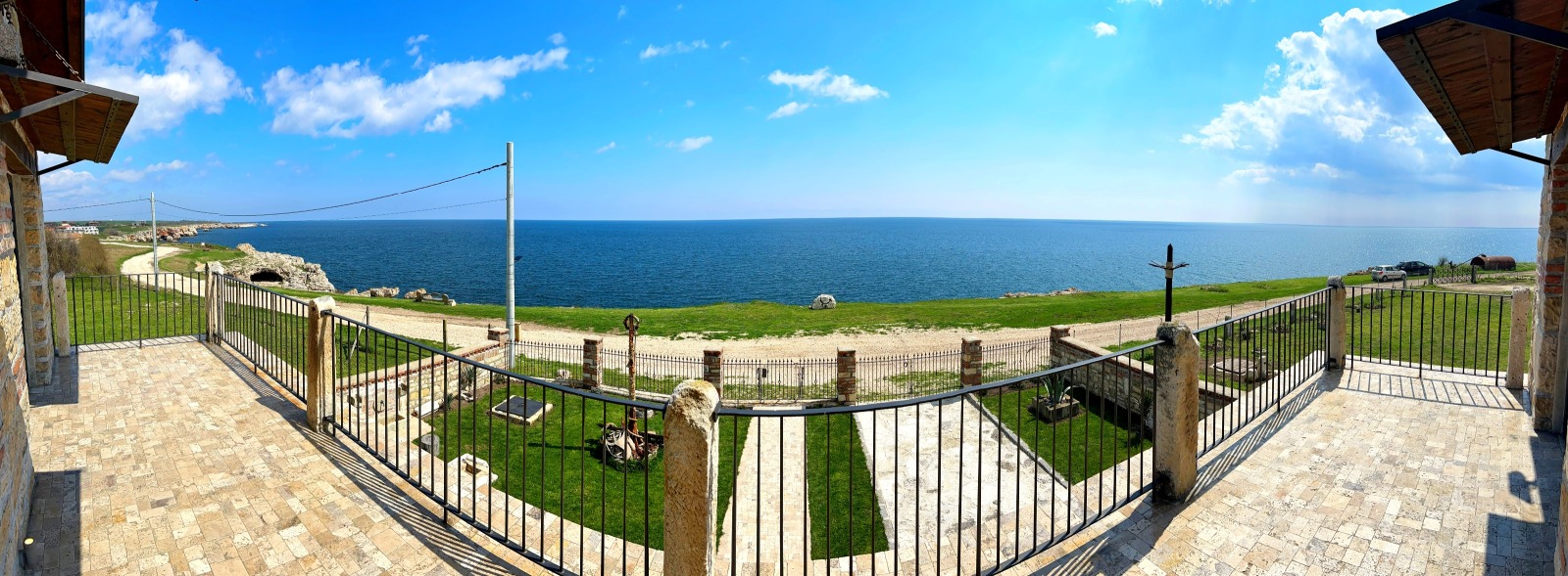 парапет от ковано желязо и дърво. Там се помещават сервизно помещение, две хубави спални със собствени бани с тоалет. От двете стаи се излиза на голяма панорамна тераса със спираща дъха гледка към морето. Домът е завършен през 2023 година с материали с високо качество и внимание към детайлите. Изполвани са масивно дърво, камък, ковано желязо, мебели и декоративни елементи с ретро-отенък, които придават на къщата характерен и запомнящ се вид. Има възможност за монтиране на камина. Прилежащият парцел е с площ от 500 кв.м, стилно озеленен, с паркоместа за няколко автомобила. Изрядни документи. Имот за ценители на спокойствието и суровата красота на Северното Черноморие.