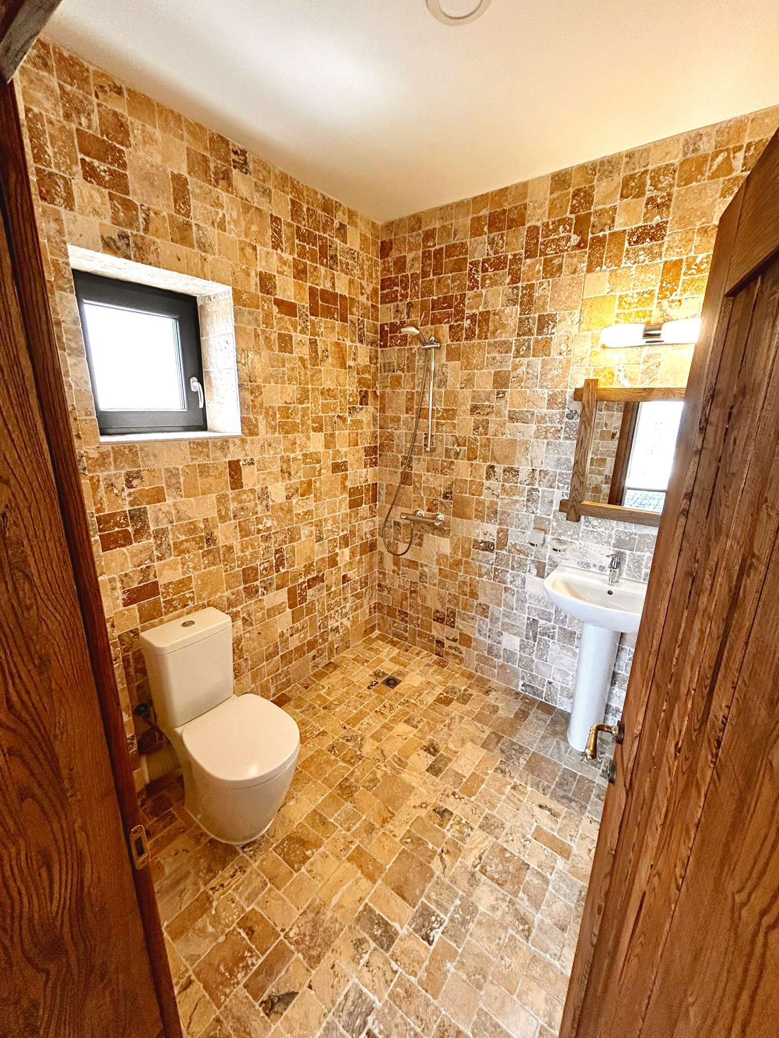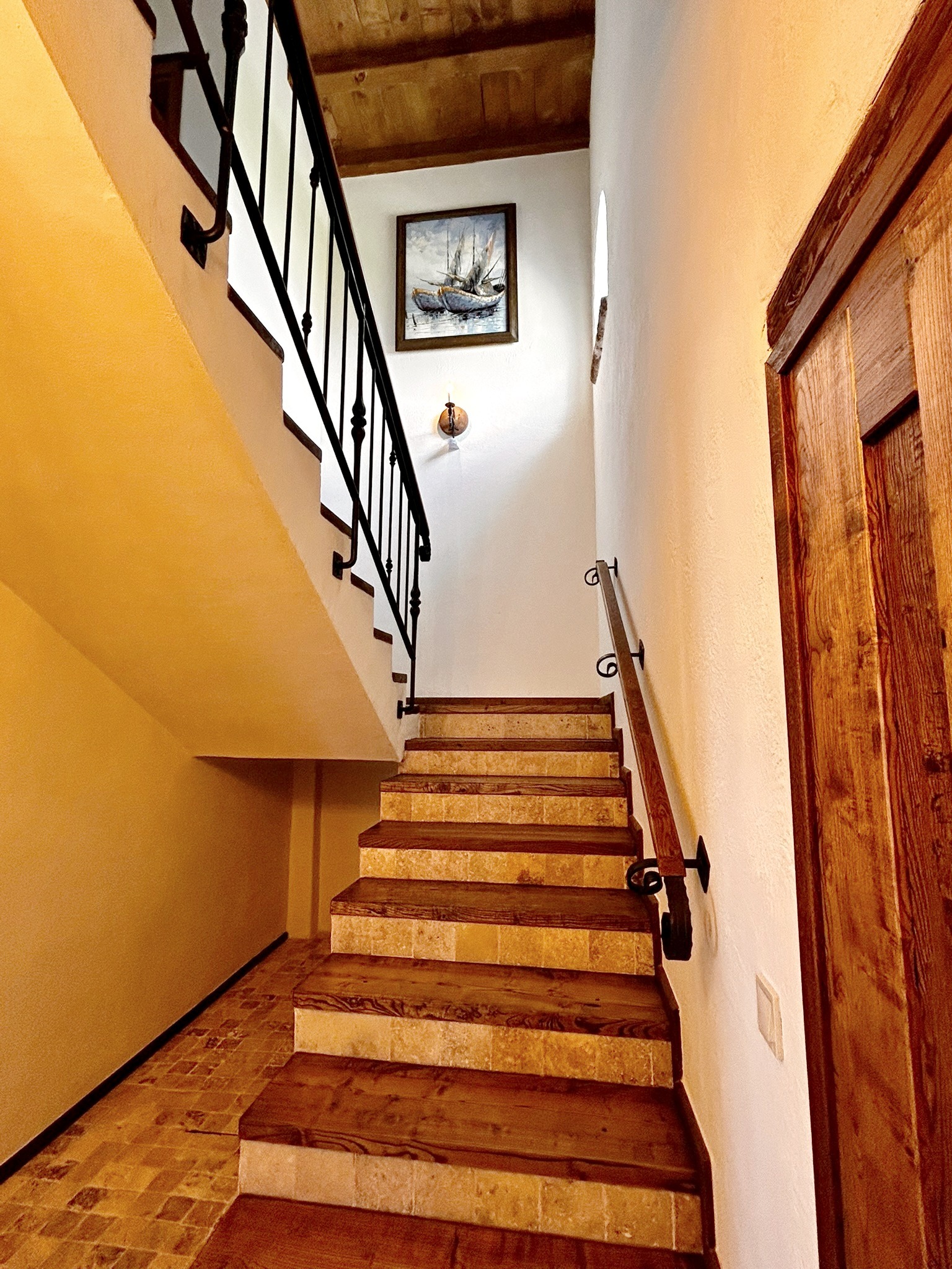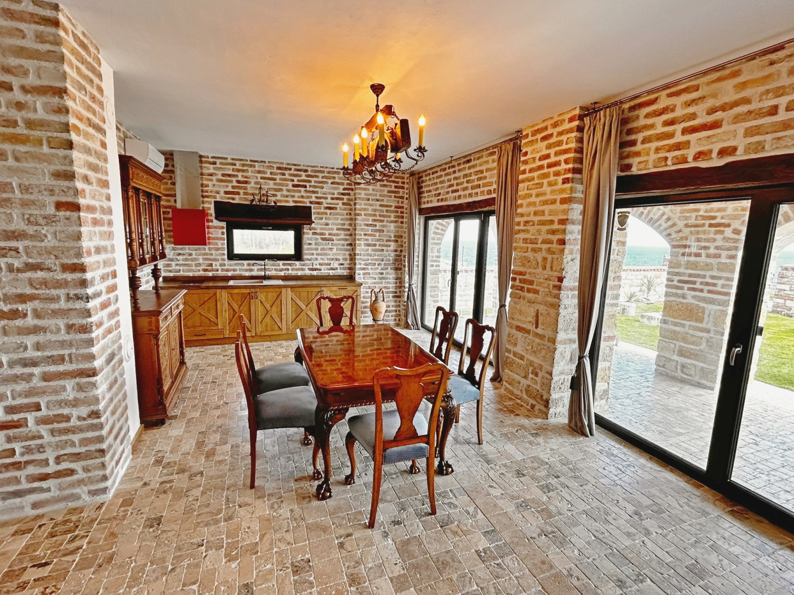парапет от ковано желязо и дърво. Там се помещават сервизно помещение, две хубави спални със собствени бани с тоалет. От двете стаи се излиза на голяма панорамна тераса със спираща дъха гледка към морето. Домът е завършен през 2023 година с материали с високо качество и внимание към детайлите. Изполвани са масивно дърво, камък, ковано желязо, мебели и декоративни елементи с ретро-отенък, които придават на къщата характерен и запомнящ се вид. Има възможност за монтиране на камина. Прилежащият парцел е с площ от 500 кв.м, стилно озеленен, с паркоместа за няколко автомобила. Изрядни документи. Имот за ценители на спокойствието и суровата красота на Северното Черноморие.