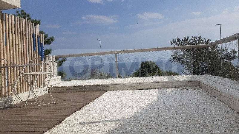 ТОПИММО предлага под наем двустаен апартамент в луксозен жилищен комплекс в квартал Бриз, в сграда с изключително модерна визия и с необятна гледка към морето. Разположен на пешеходно разстояние от Морската градина и плажа, комплексът предлага уют, спокойствие и лукс сред природата в съчетание с панорамна гледка към морето.