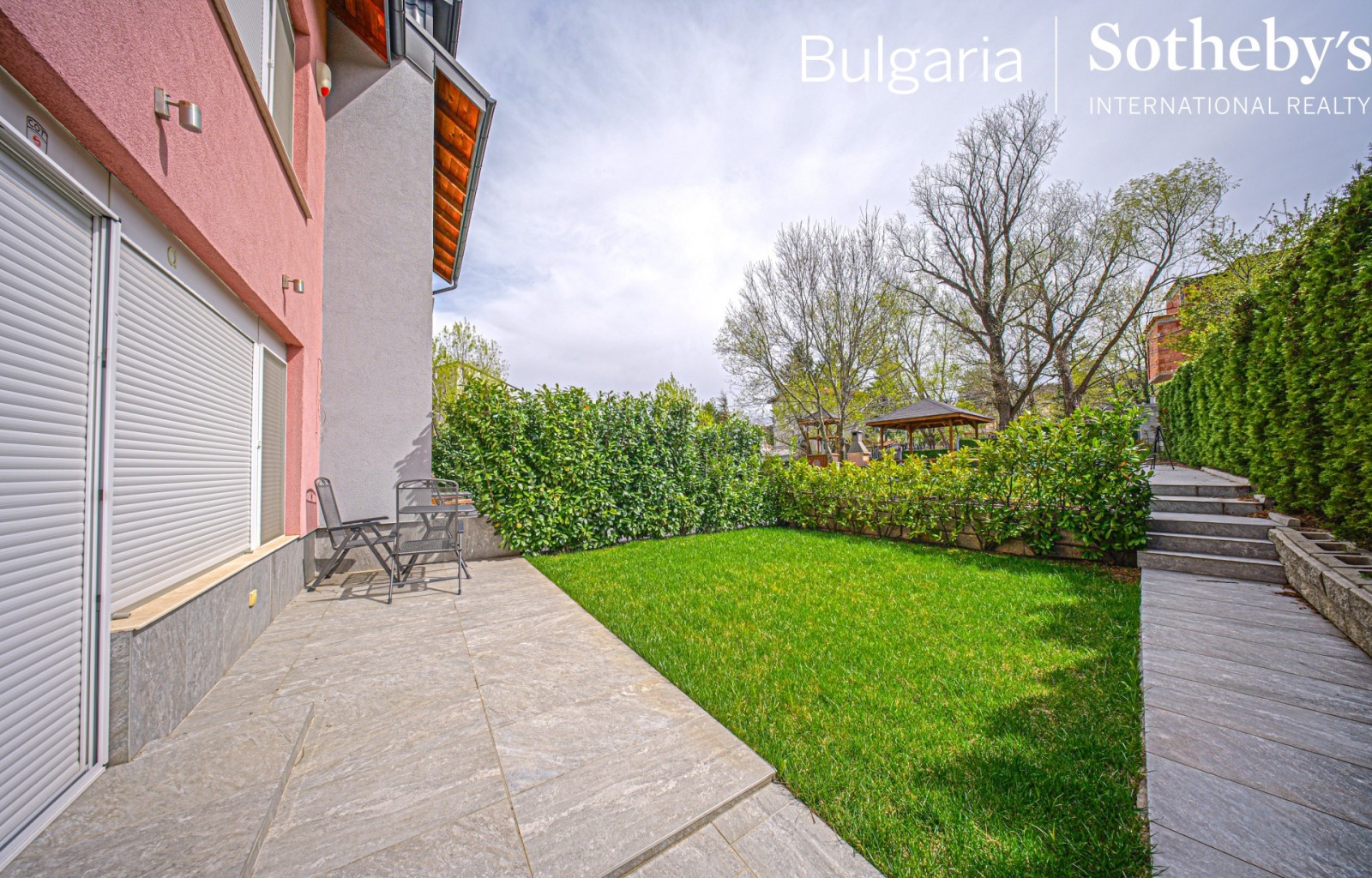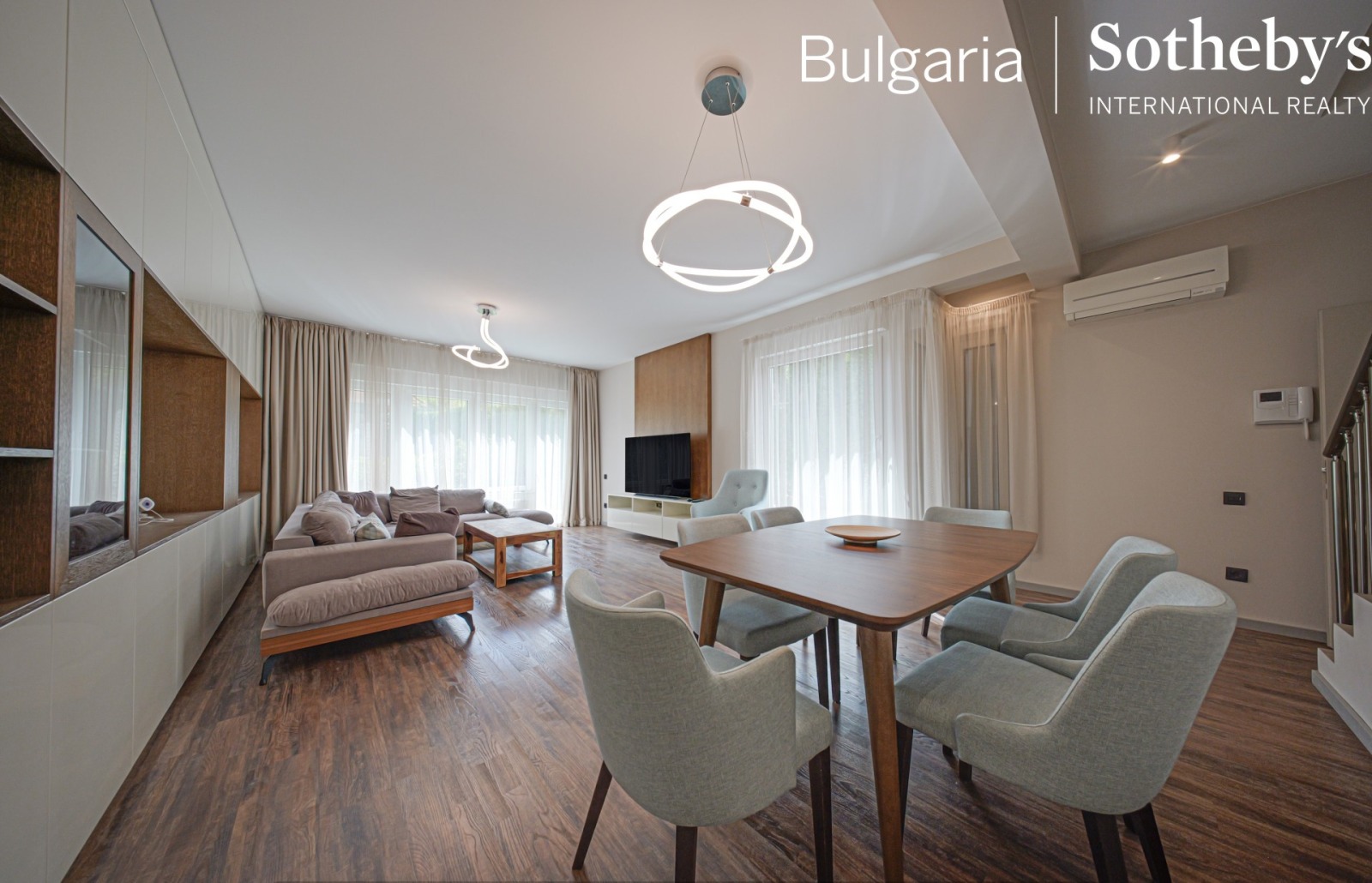 BULGARIA SOTHEBY S INTERNATIONAL REALTY is pleased to present you an exceptionally well-maintained and fully furnished townhouse, located in one of the most prestigious and green areas of Sofia. The property combines coziness, functionality and style, offering ideal conditions for both family living and peaceful work from home.