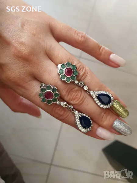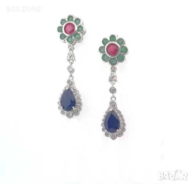 Необичайни Сребърни Обеци с Рубини, Сапфири и Изумруди от Тайланд → Обява 49891261