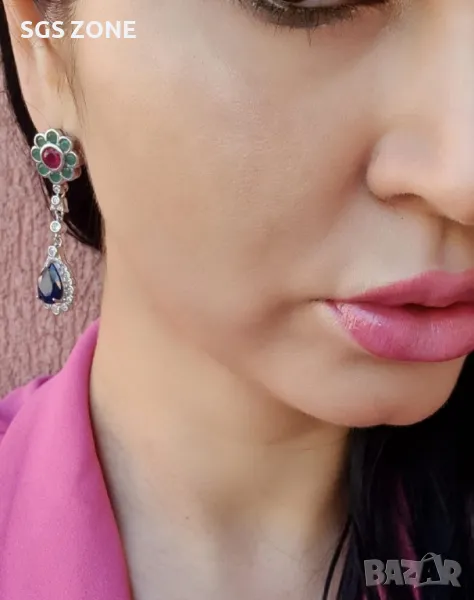 Необичайни сребърни обеци с рубини, сапфири и изумруди от Тайланд. Още снимки и видеа на продукта в Instagram и Facebook sgs.zone, уебсайт sgs.zone. Изпращане Speedy и Эконт. Шоурум в София, Дондуков, 53. Всички продукти са със сертификати и подаръчна кутия