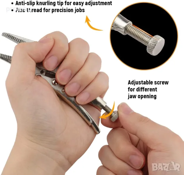 - 1 бр. Извити клещи за заключване на челюстта - обща дължина 4" (100 mm)