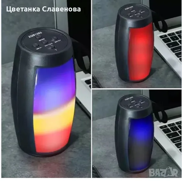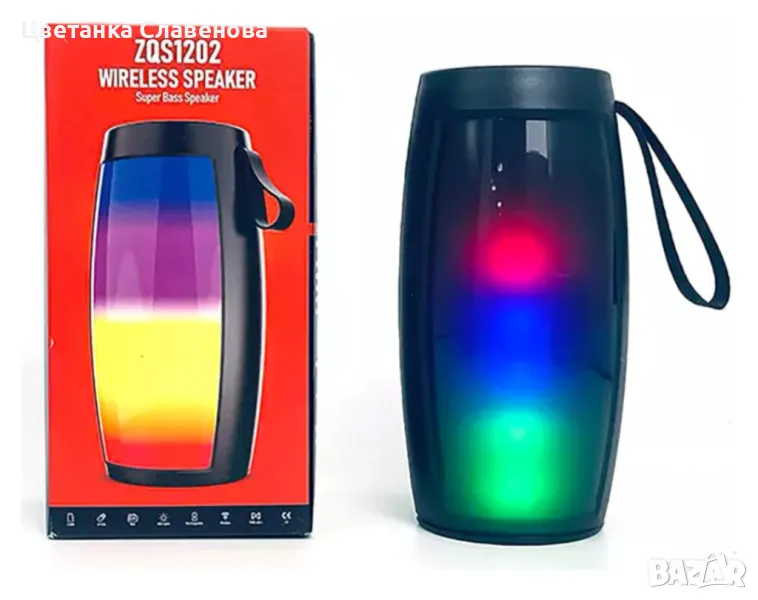 Високоговорител ZQS1202 Super Bass Bluetooth Преносим безжичен 5W RGB светлинен четец MP3 карта TF/USB