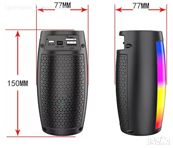 Високоговорител Super Bass Bluetooth преносим безжичен 5W RGB светлина Redare MP3 карта TF/U