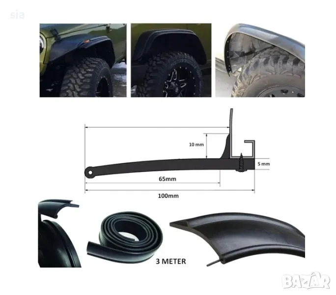Гъвкавият материал позволява лесно закрепване с винтове или болтове към калника на автомобила.