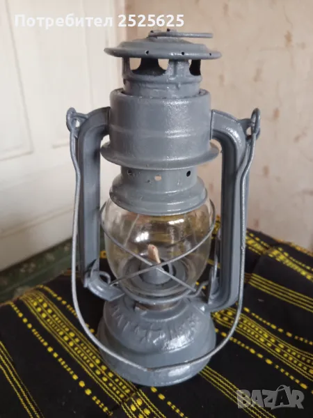 Работещ, изцяло реновиран, боядисан. С нови стъкло и фитил. Ремонтирано дъно.