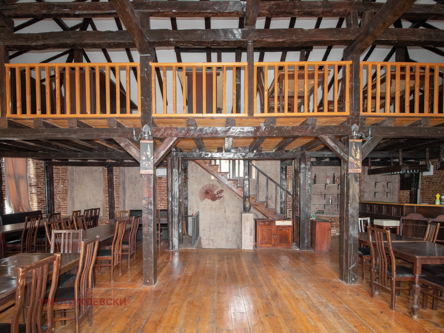 кухня, складово помещение и санитарен възел. Всичко необходимо за незабавно започване на бизнес е налично. Към тази част има и вътрешна тераса (70 кв.м) - тип балкон, която предлага уютна и приятна атмосфера, подходяща за топлите месеци.
