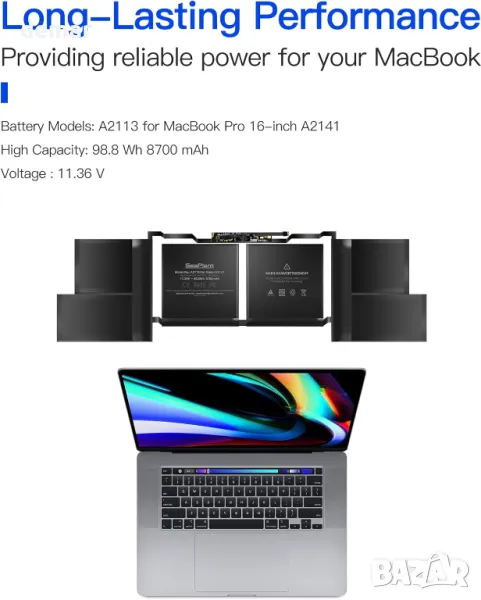 Модел на батерията: A2113; Напълно съвместима с MacBook Pro 16-инчов A2141 (2019).
