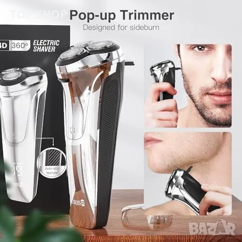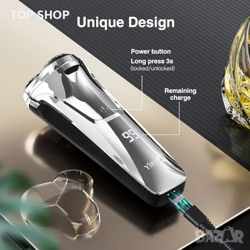 Ключови думи: Водоустойчива електробръсначка, мъжка електробръсначка, 4D Плаваща глава, Pop-up Тример, Мултифункционален LCD Дисплей, Тревъл Лок, зареждане с USB-A, дълготрайна батерия.