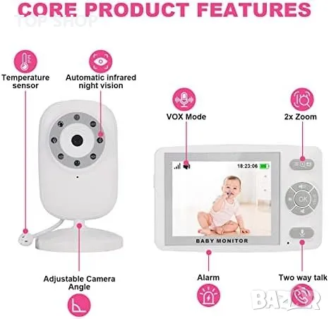 Ново Бебешки монитор с камера и аудио 3.5 HD екран/Нощно виждане/Бебе