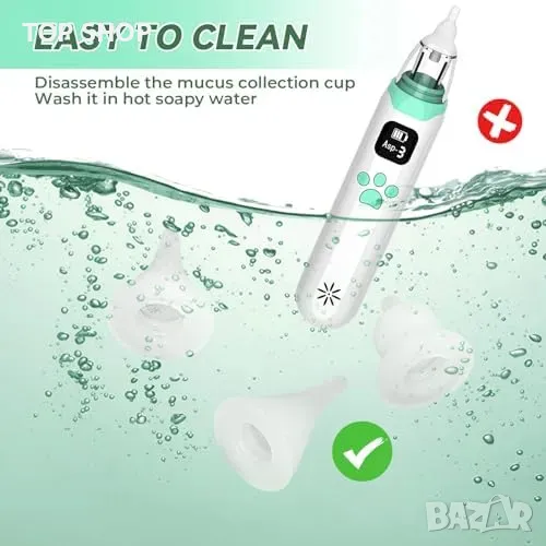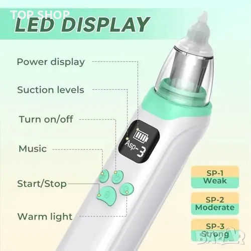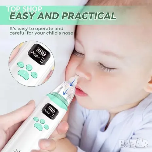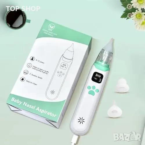 Нов Електрически аспиратор за нос за бебе с 3 силиконови накрайника