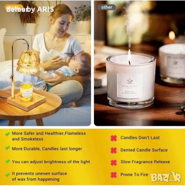 Електрическа лампа за подгряване на свещи с таймер и димър