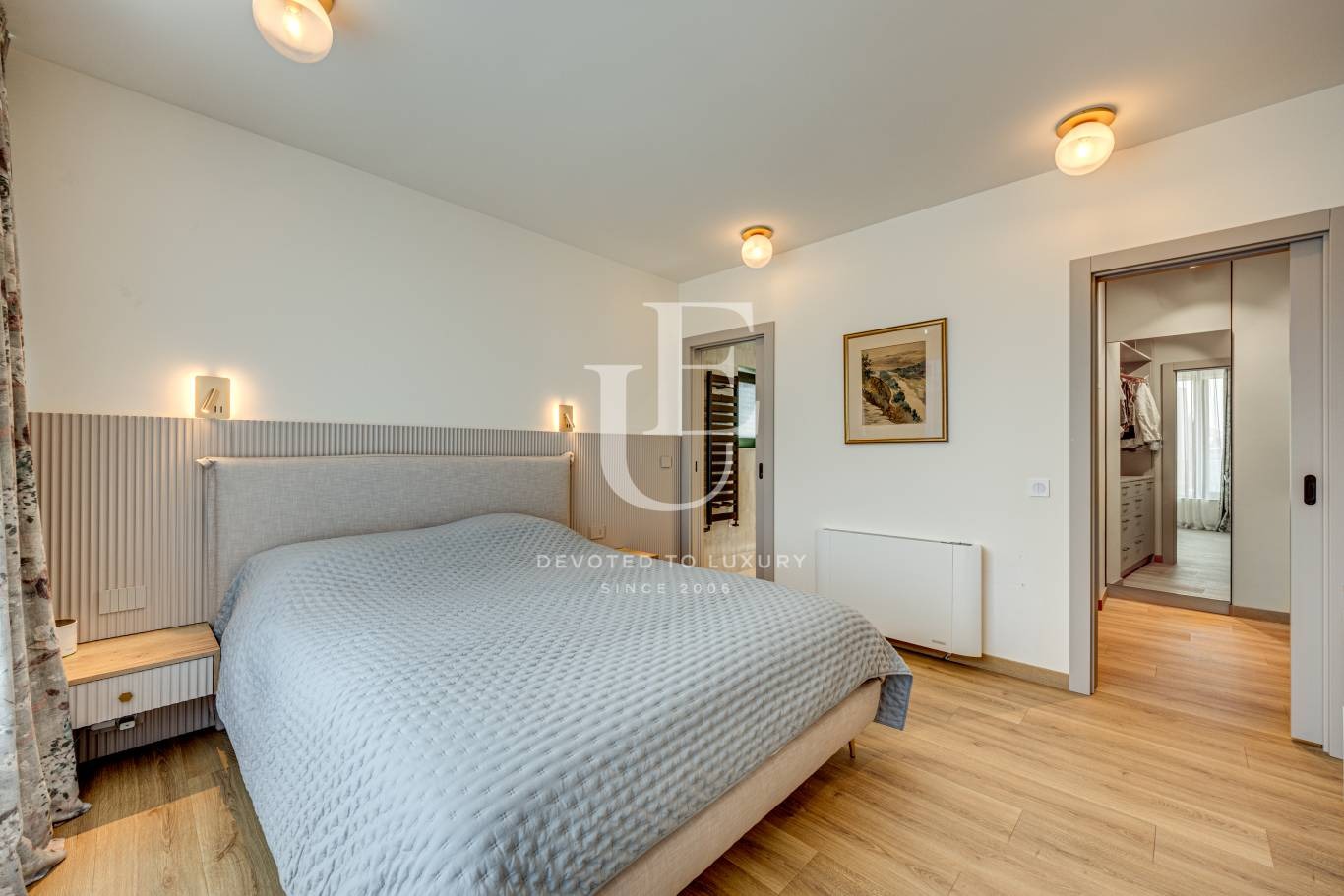 2-ри етаж: Четири спални, дрешник, три бани с тоалетна, мокро помещение, голяма тераса, термопомпа Ecodan, която работи с газ и с ток по избор, конвекторни тела Olimpia Splendid Italy с опция за охлаждане, както и за допълнително отопление.