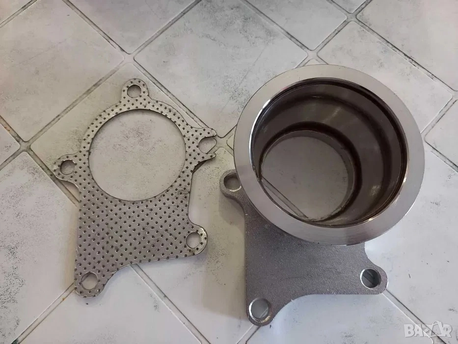 Нов неръждаем даунпайп фланец на ф76 комплект с гарнитура за турбо Т3Т4, Т04Е с изход към даунпайпа за в-банд скоба на Ф76. Фланецът може да се използва с външен гейт.