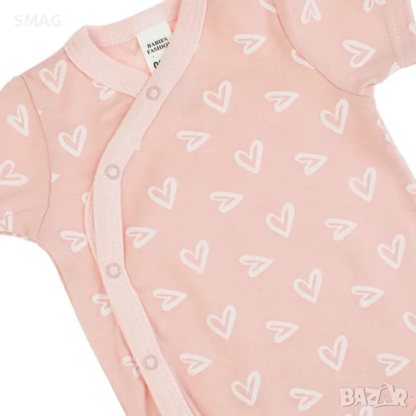 Бебешко памучно боди с къс ръкав и розови сърца S_1233525 → Обява 49893988