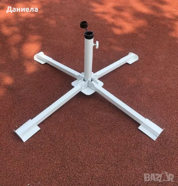 Дължина: 90 см;Тип продукт: Стойка за чадър;Материал: Здрав метал;Функции: Фиксиране на чадъри, осигуряване на стабилност;Съвместимост: Подходяща за чадъри с различни размери на тръбите;Употреба: За външни пространства – плаж, градина, двор, тераса;