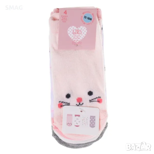 Бебешки чорапи за момичета Бели Розови Сиви Котешки Сърца - 4 чифта S_1249436 → Обява 49894308