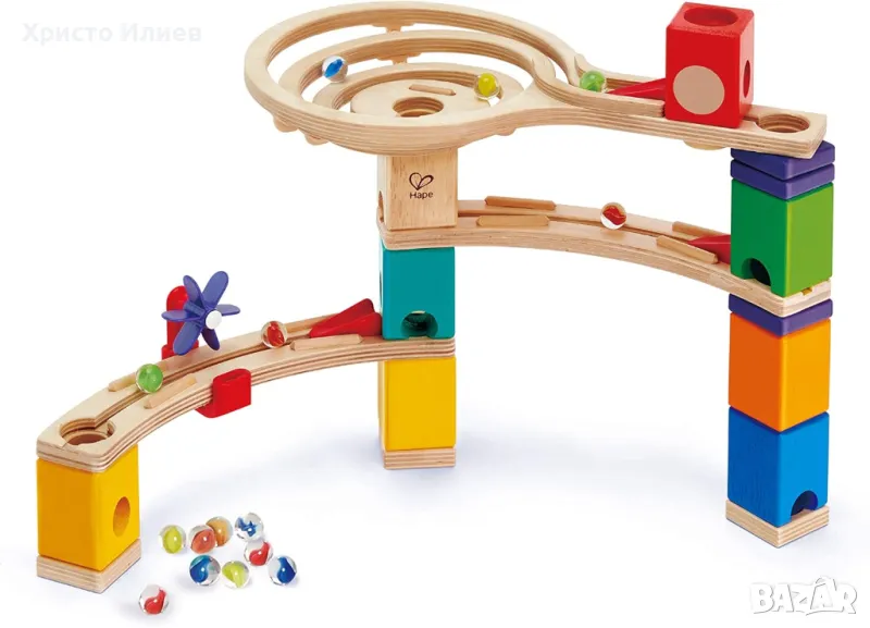 Дървената писта с топчета от серията Quadrilla Надпревара до финала има две цели - тя е не само е прекрасна играчка, с която детето се забавлява, но също така е и STEM играчка за обучение - с нея детето учи, докато играе.