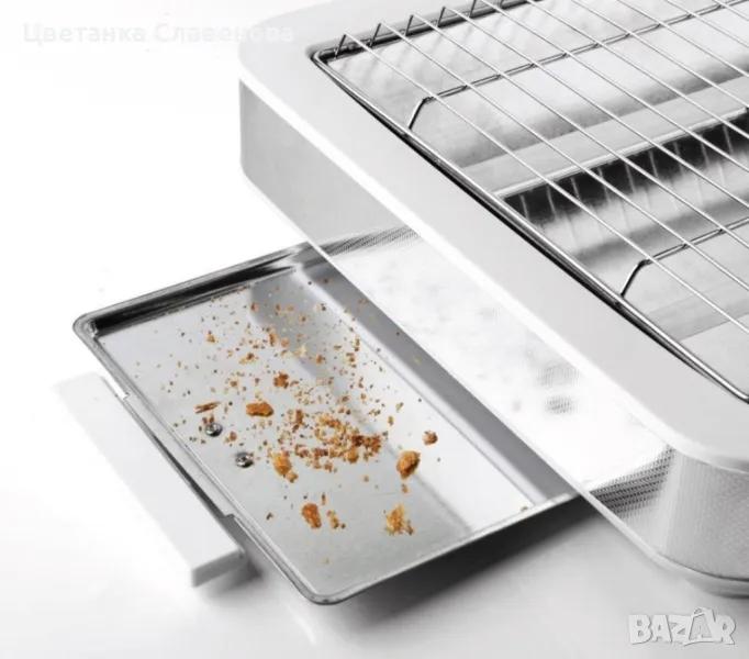 Този хоризонтален тостер с мощност 900 W разполага с просторна повърхност 24x20 cm, идеална за равномерно и ефективно препичане на всички видове хляб и сладкиши.