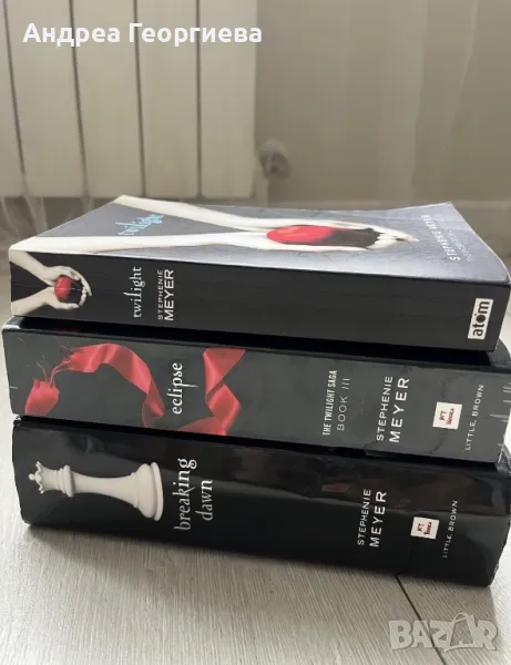 Продавам 1-са, 2-ра и 3-та книга от поредицата “Здрач” на английски език. Breaking Dawn е с твърди корици. Цената е за трите книги заедно. Книгите са в изключително добро състояние.