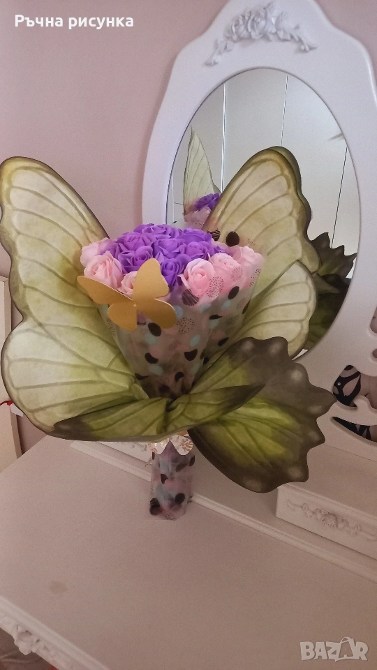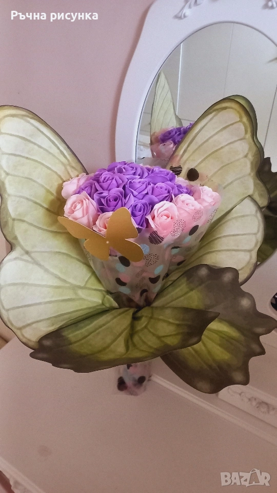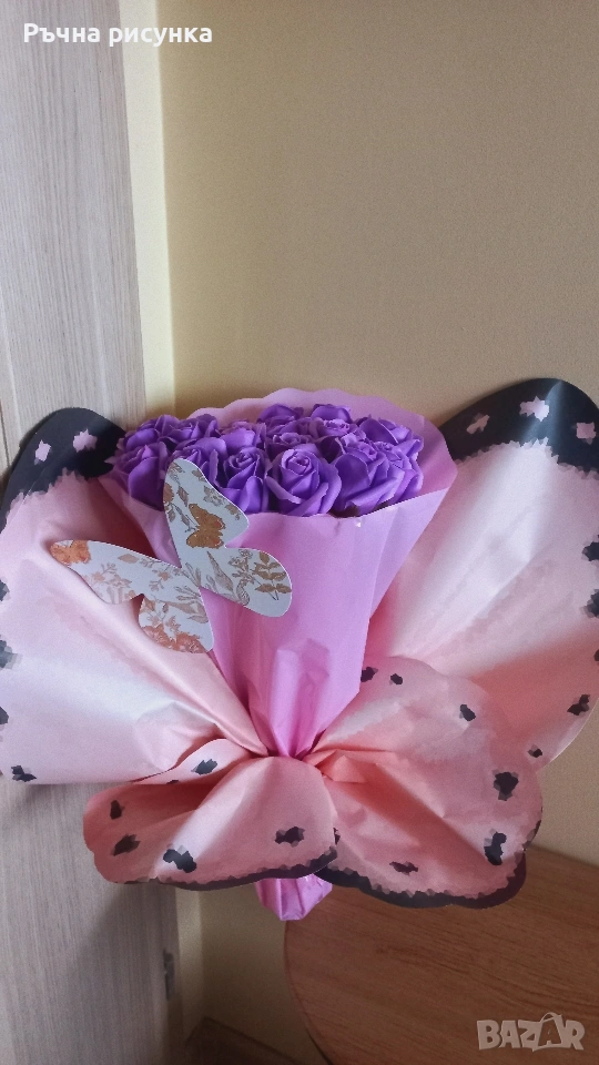Букет с опаковка пеперуда -21рози или 23рози -цвят по ваше желание.Цена 15евро