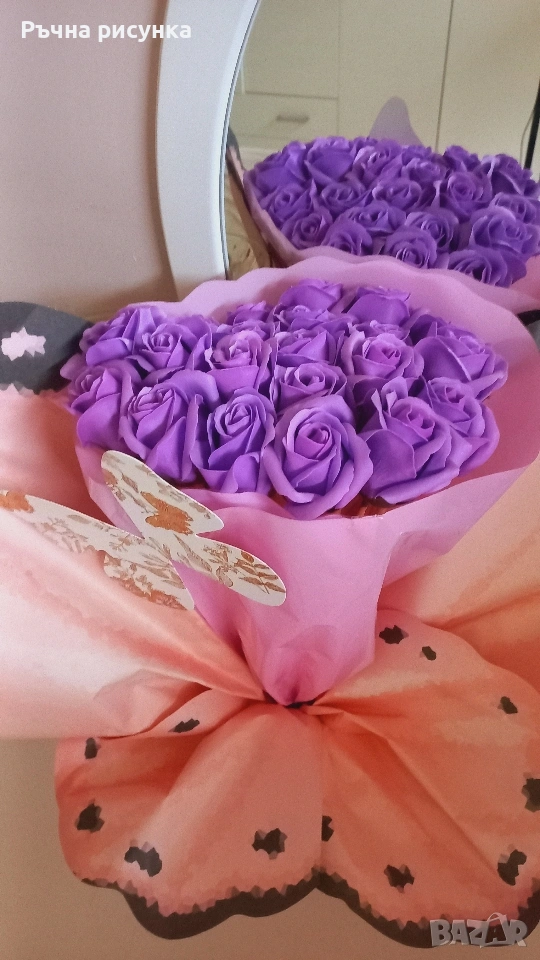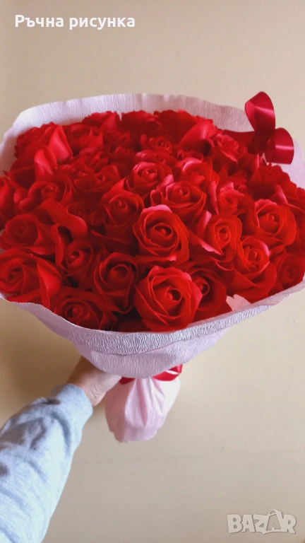 Голям букет от 51 броя червени рози (може и в други цветове или смесени)ароматни сапунени рози-цена 20евро