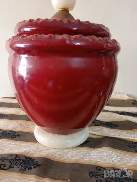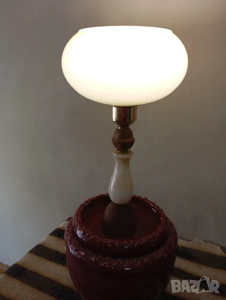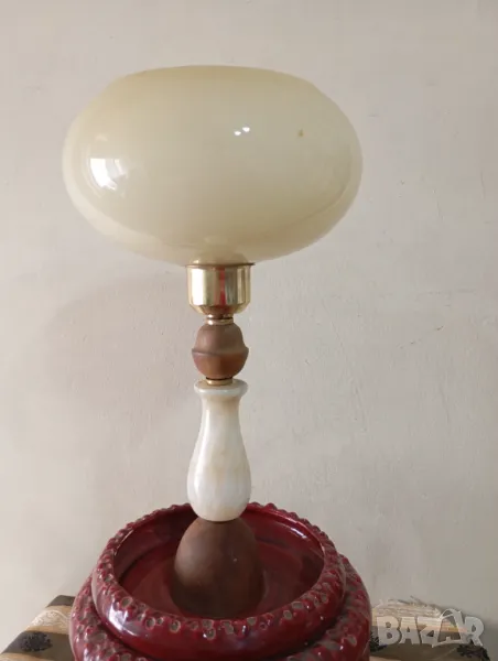 стара нощна лампа.корпус от оникс,дърво, предполагам керамика(червеното).