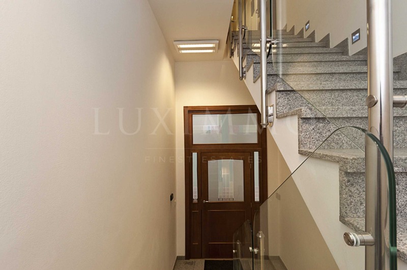 Подово покритие: дъбов паркет и гранитогрес, стълбищата са от гранит;