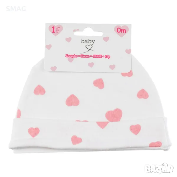 Бебешка памучна шапка бели розови сърца 0+ S_1238349 → Обява 49894889