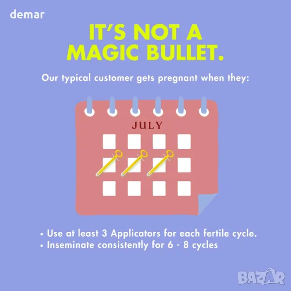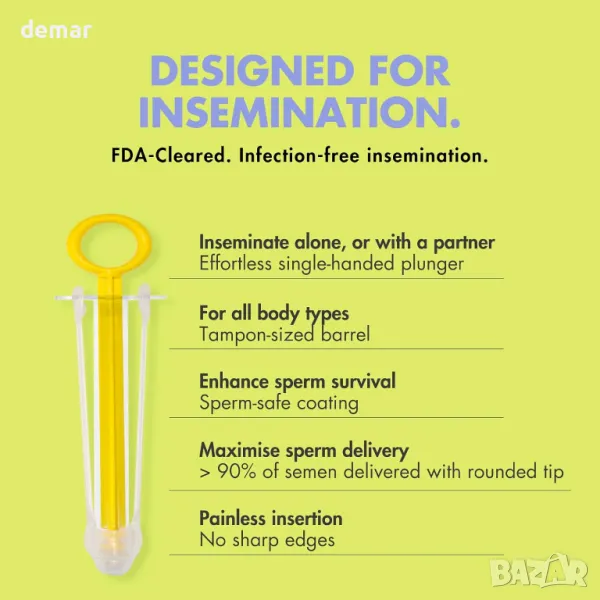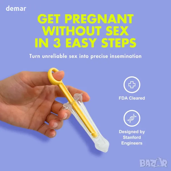 Безстресова опция за домашно осеменяване, която ви позволява да избегнете полов акт. Този комплект включва еднократни, предварително запечатани компоненти за лесна и хигиенична употреба без измиване. С технология за задържане на сперматозоидите близо до шийката на матката и подобряване на шансовете за оплождане, комплектът се предлага с апликатори, меки накрайници и чашки за събиране на проба за комфортно преживяване у дома. Регистриран е от MHRA, маркиран от UKCA, одобрен от FDA и се доставя дискретно за поверителност.