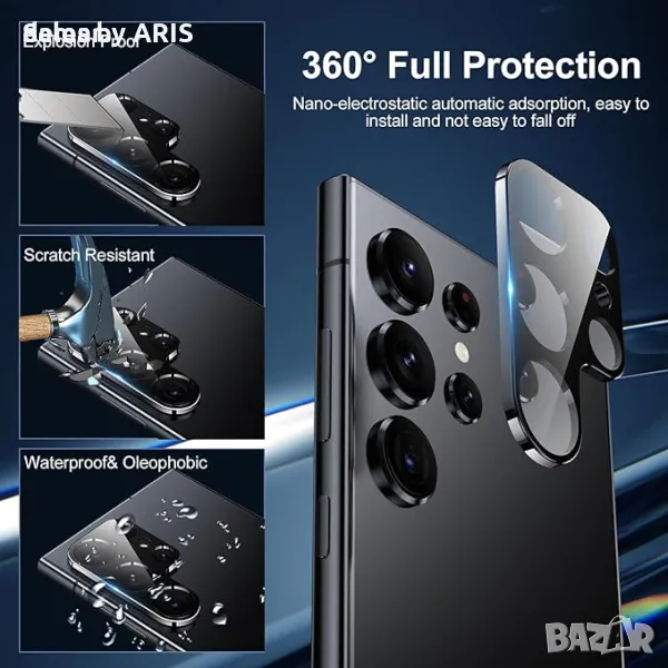 Този комплект включва 4 протектора за екран от закалено стъкло и 2 протектора за обектива на камерата, специално проектирани за Samsung Galaxy S24 Ultra, осигуряващи цялостно предно и задно покритие. Имайте предвид, че тези протектори не са подходящи за моделите S24 или S24 Plus. Протекторите на екрана са много чувствителни, осигурявайки безпроблемно потребителско изживяване, без да се прави компромис с чувствителността на допир. Протекторите за обектива на камерата са изработени от закалено стъкло с твърдост 9H, което предлага стабилна защита срещу надраскване, счупване и удари, докато покритието против пръстови отпечатъци поддържа яснотата. С 99,99% пропускливост на светлина, тези протектори запазват оригиналните цветове на вашите снимки, дори при условия на слаба светлина. Инсталирането е лесно, благодарение на прецизната изрязана рамка, позволяваща безпроблемно и точно приложение.