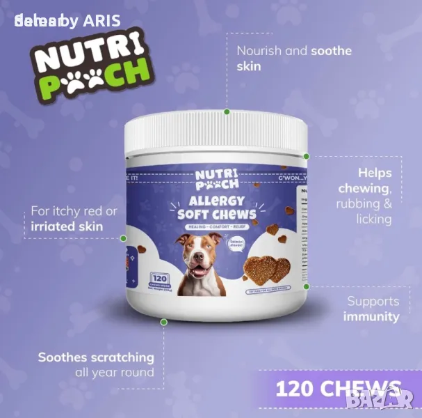 Добавки за кучета NutriPooch за облекчаване на сърбежа – 120 броя дъвчащи
