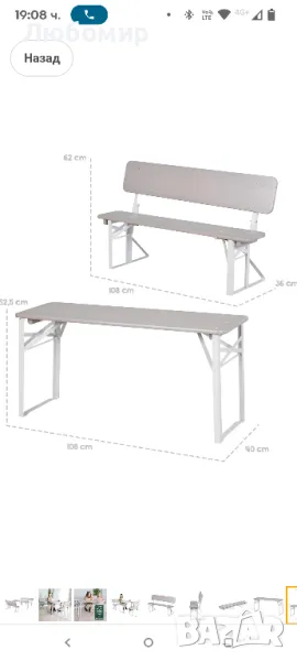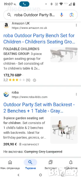 roba Комплект пейка за парти на открито за деца - Детска група за сядане с дървена облегалка - 2 пейки + 1 маса - Сгъваеми къмпинг мебели от 24 месеца - FSC сертифицирани - сиво лакирано.СГЪВАЕМА ДЕТСКА ГРУПА ЗА СЯДАНЕ: Градинска група за сядане от 3 части за деца - Комплект, състоящ се от 1x детска маса и 2x пейки с облегалка - Идеален за рождени дни, пикници или градински партита - Подходящ за до 4 малки деца (макс. 80 кг)СПЕСТЯВАЩО МЯСТО И БЕЗОПАСНО: Детски пейки и маса лесно се сгъват - Удобен за деца и сигурен комплект мебели за сядане със заоблени ръбове - Практично решение за игра, майсторене или рисуване на открито.FSC СЕРТИФИЦИРАНО ДЪРВО: Използване на естествено, здраво масивно дърво от устойчиво отглеждане - Неръждаеми, боядисани метални крака със сгъваем механизъм - Бързо сглобяване благодарение на интелигентна конструкция.СПЕЦИФИКАЦИИ: Маса В 52 x Ш 109 x Д 40 см - Пейки: В 62 x Ш 108 x Д 20 см - Височина на седалката: 34 см - Материал: Повърхност на седалката и масата от масивно дърво - Крака от боядисан метал - Възрастов диапазон: до 80 кг