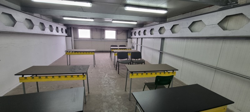 Дава се под наем търговски обект в промишлена зона със застроена площ от 417,42 квадратни метра и разгъната застроена площ от 600 квадратни метра. На два етажа! На първият етаж са разположени автосервиз, склад, магазин, тоалетна и баня с тоалетна. На вторият етаж са разположени офис, учебна зала, търговско помещение. Разполага със собствен паркинг! Газифициран! Подходящ е за магазин, офис, сервиз, складова база и др.