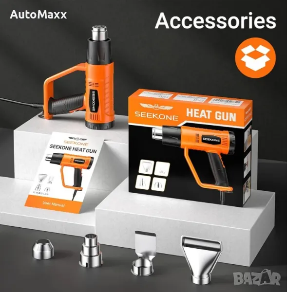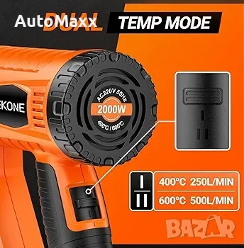 SEEKONE 2000 W професионален комплект пистолет за горещ въздух за тежки условия на работа 400 ℃ и 600 ℃ Двойни температурни настройки с огнеупорно защитно покритие, 4 дюзи за занаяти, свиващ се PVC, боя за отстраняване