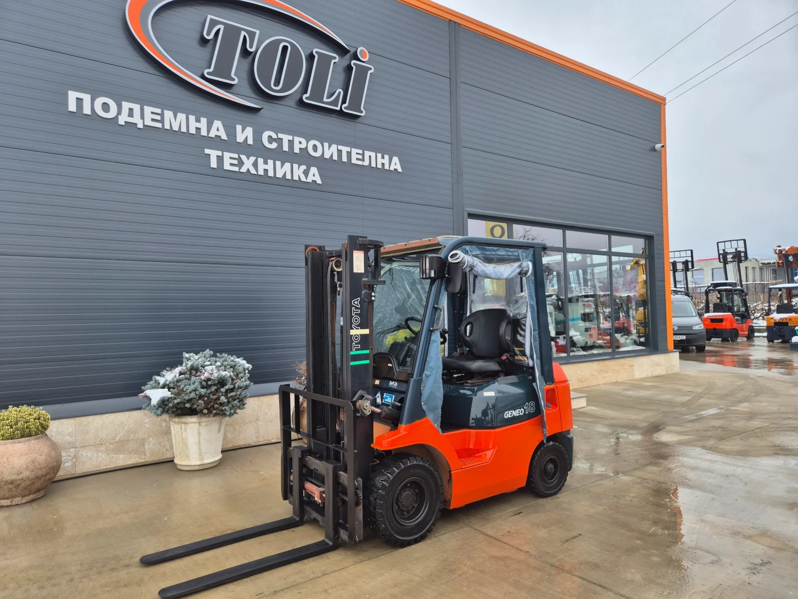 МЕКА КАБИНА. ПАРНО. Газ + бензин. Изравнител. Височина на вдигане 3м. Нов внос от Япония с гарантиран произход. Закупен от представителство на TOYOTA Tokio. Мотокара е в отлично техническо и визуално състояние. Напълно обслужен. Ново масло на двигател и хидравлика, нови филтри. Нови гуми. Безупречна работа на двигателя и ходова част, без никакви течове. Удобен за работа в ниски помещения. '' ТОЛИ АУТО'' предлага голяма гама от мотокари нов внос в наличност ( над 150 броя ), които са проверени и напълно обслужени в Япония. Допълнително са прегледани от наш екип и фирмата дава ГАРАНЦИЯ за безупречната работа на мотокарите. Ако изпитвате затруднения в избора си на мотокар, можете да се свържете с нас и да ви разясним характеристиката и предимствата на всяка една машина. Така ще ви помогнем в правилния избор. За нас е важно да ви предложим точната машина която да е подходяща в работата ви. Поддържаме в наличност резервни части и консумативи за всички модели японски мотокари. Фирмата предлага изгоден лизинг с 0, 7% месечна лихва. Осигуряваме транспорт до всяка точка на България. Коментар на цената само на място. Цената е без ДДС. Издаваме фактура