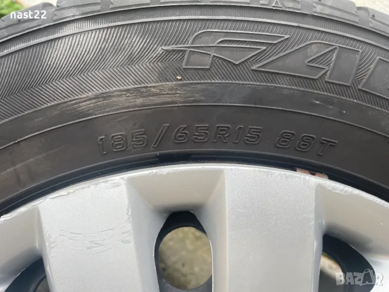 Гумите са 185/65/15 всесезонни,като не спадат въобще и могат без проблем да изкарат един сезон, имат грайфер,но са със стар Дот
