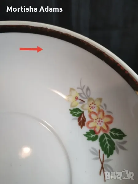 Минимални драскотинки по глазурата и едва забележимо "косъмче" на една от тях.