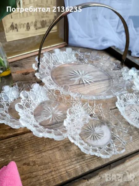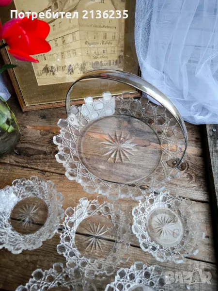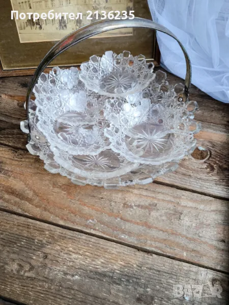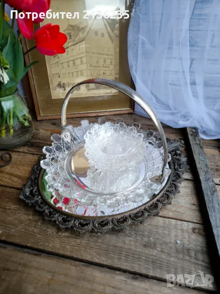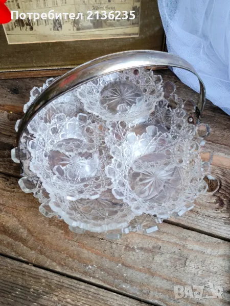 Произход: Комбинация от английско сребро и руски кристал, типична за късната Викторианска епоха, когато такива предмети са били популярни сред аристокрацията в Европа.